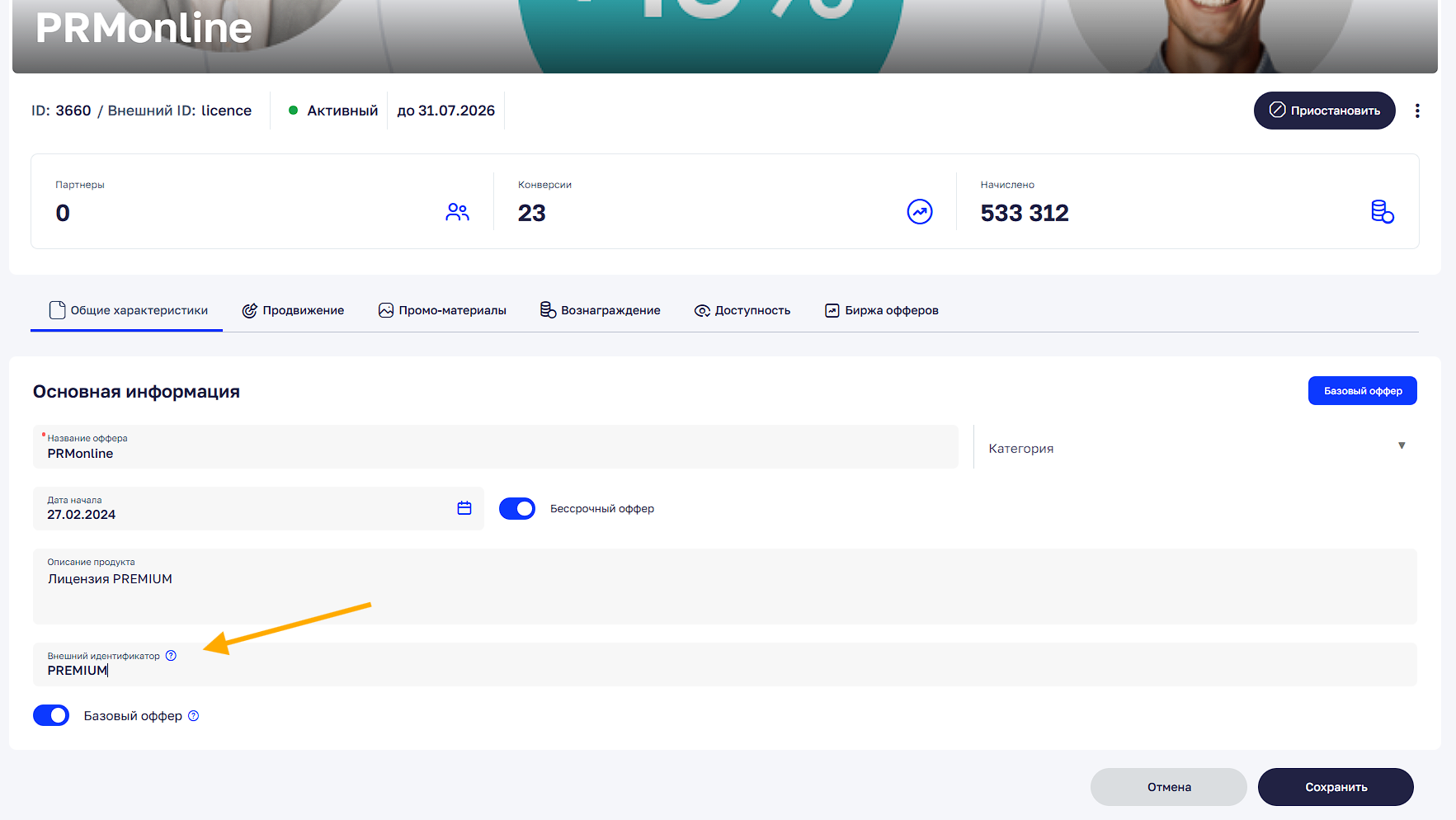 Переопределение оффера позволяет изменить оффер, который будет использоваться для расчета вознаграждения, уже после того, как лид попал в PRMonline.