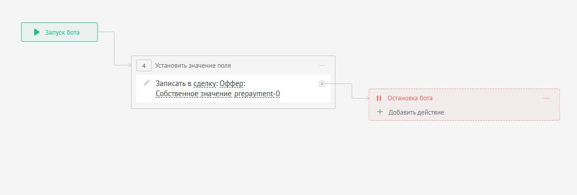 После этого нужно настроить триггер, робота или бизнес-процесс, который будет автоматически заполнять это поле нужным значением в зависимости от условий сделки.