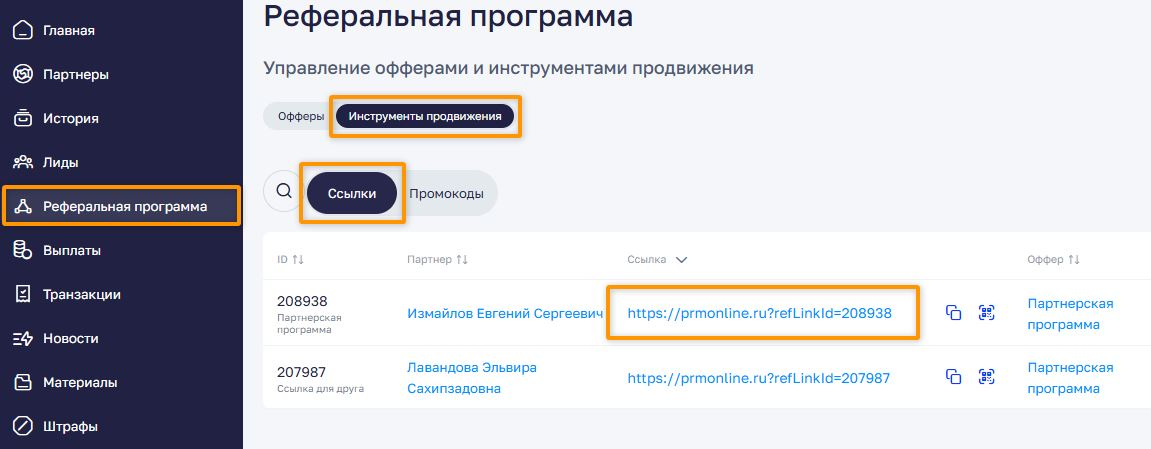 С сайта в лид/сделку в CRM передаются значимые для PRM поля refLinkId (код реферальной ссылки), promocode (значение промокода, если используются промокоды), userId (уникальный идентификатор клиента).