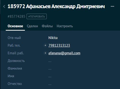 Снова переместим лид по статусам в CRM, чтобы повторно отправить запрос на изменение данных в PRM. Наименование лида изменилось на ФИО контакта