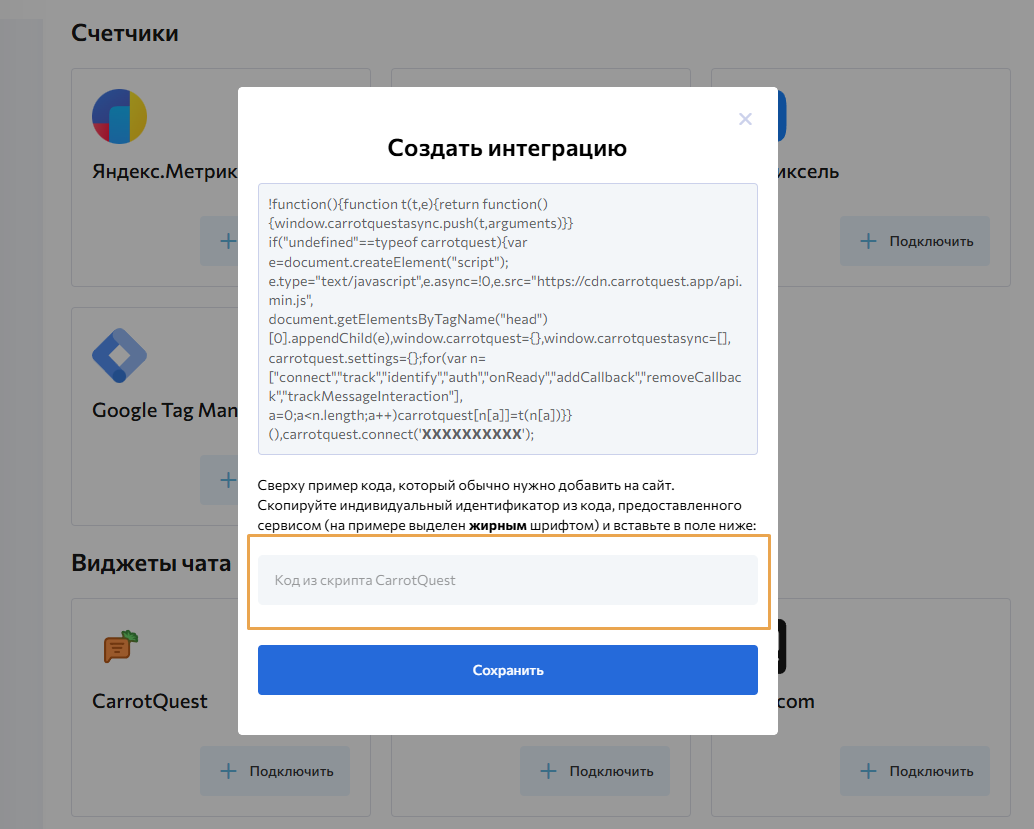 Подключение Carrot Quest