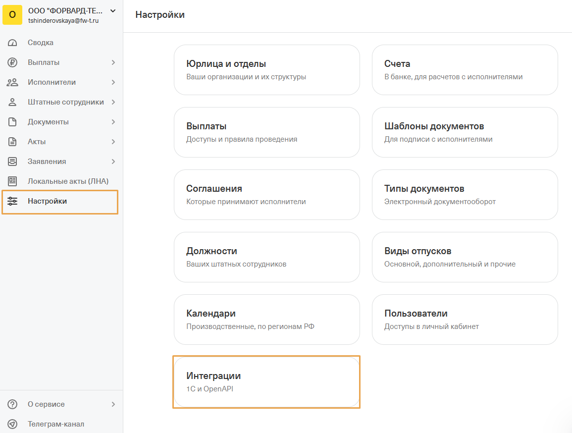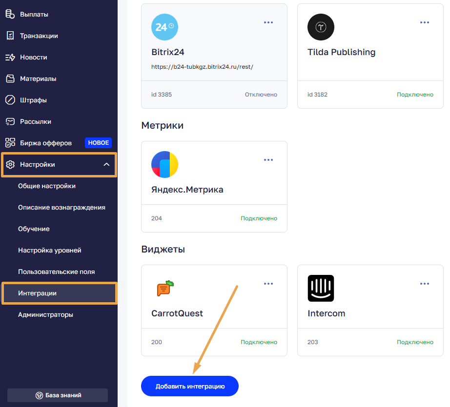 Подключение и настройка интеграции