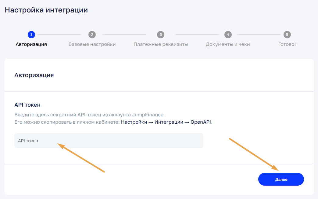 Для запуска интеграции с Jump.Finance потребуется: