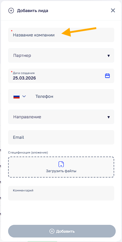 Название поля наименования лида