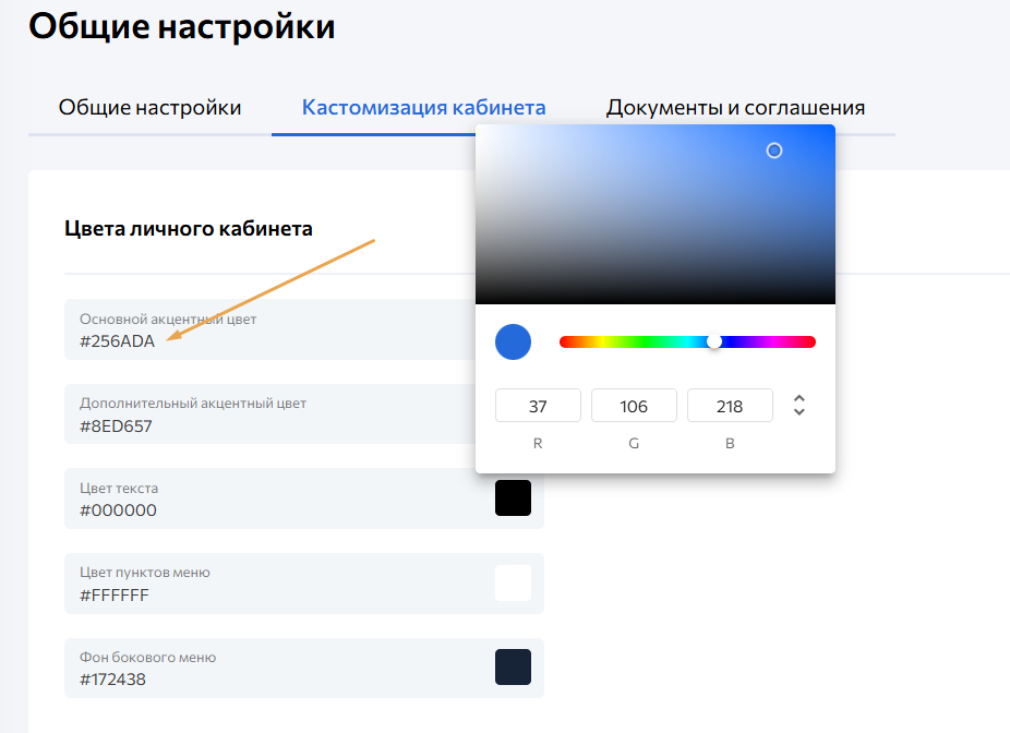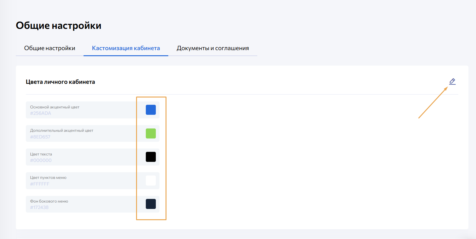 Настройки → Общие настройки → Кастомизация кабинета