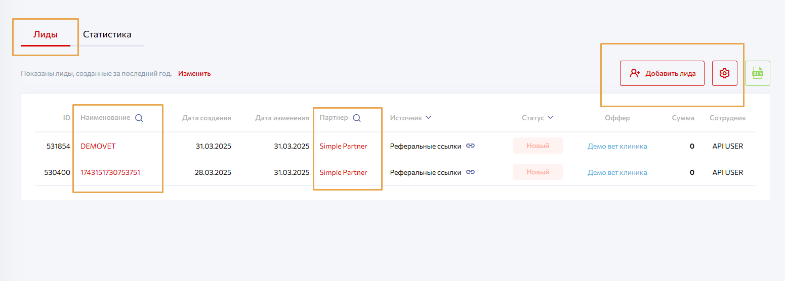 Наименование объекта «лид»