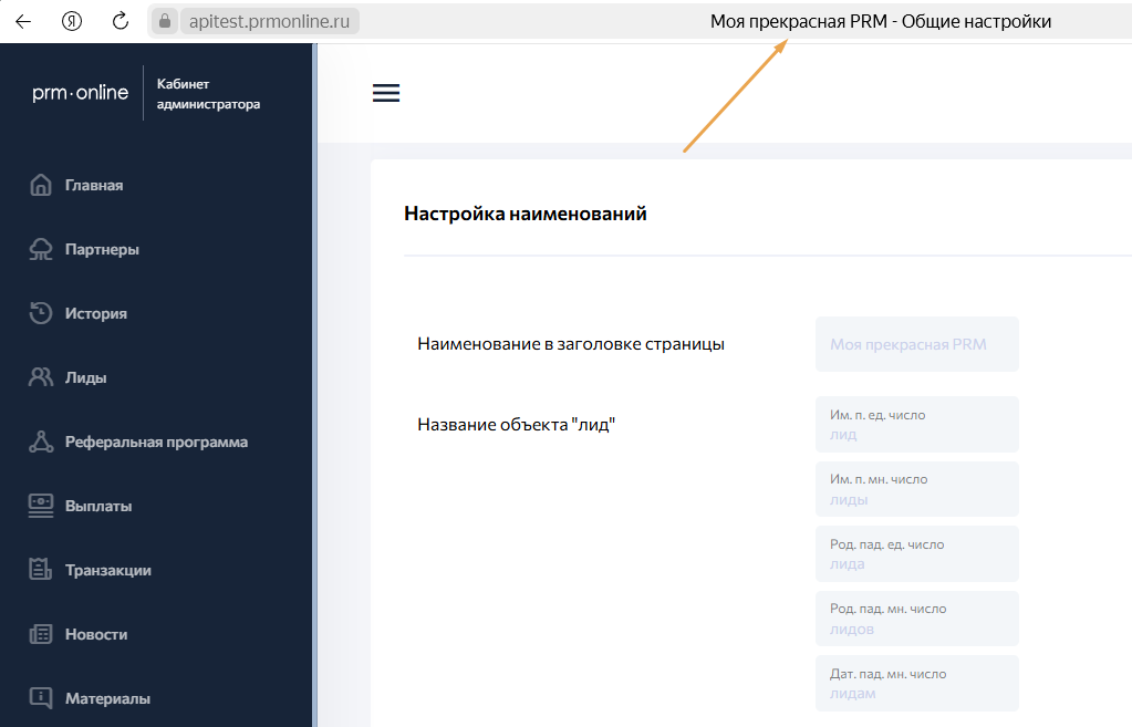 Позволяет заменить слово «Лиды» в интерфейсе, например на «Клиенты».