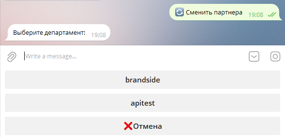 Кнопка «Сменить партнёра» отображается, если к вашему Telegram-аккаунту привязано более одного партнёрского профиля.