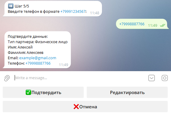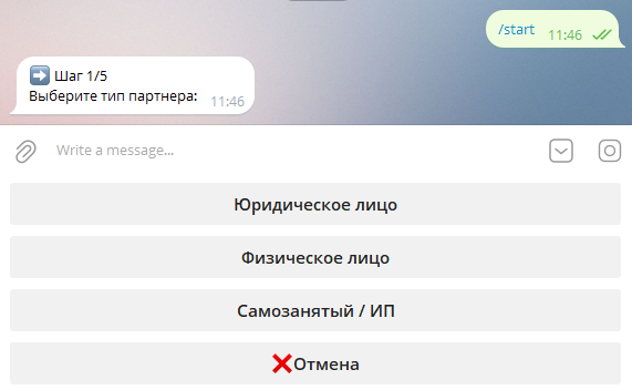 Регистрация партнёров через Telegram-бота