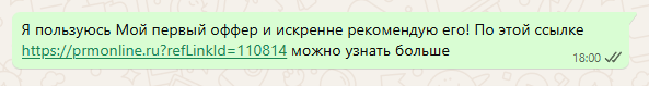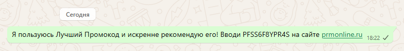 Сообщение в WhatsApp, промокод: