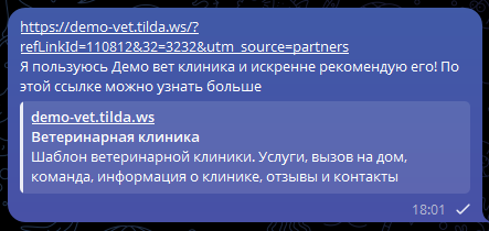 ⚠️ Для Telegram отключить подстановку реферальной ссылки нельзя.